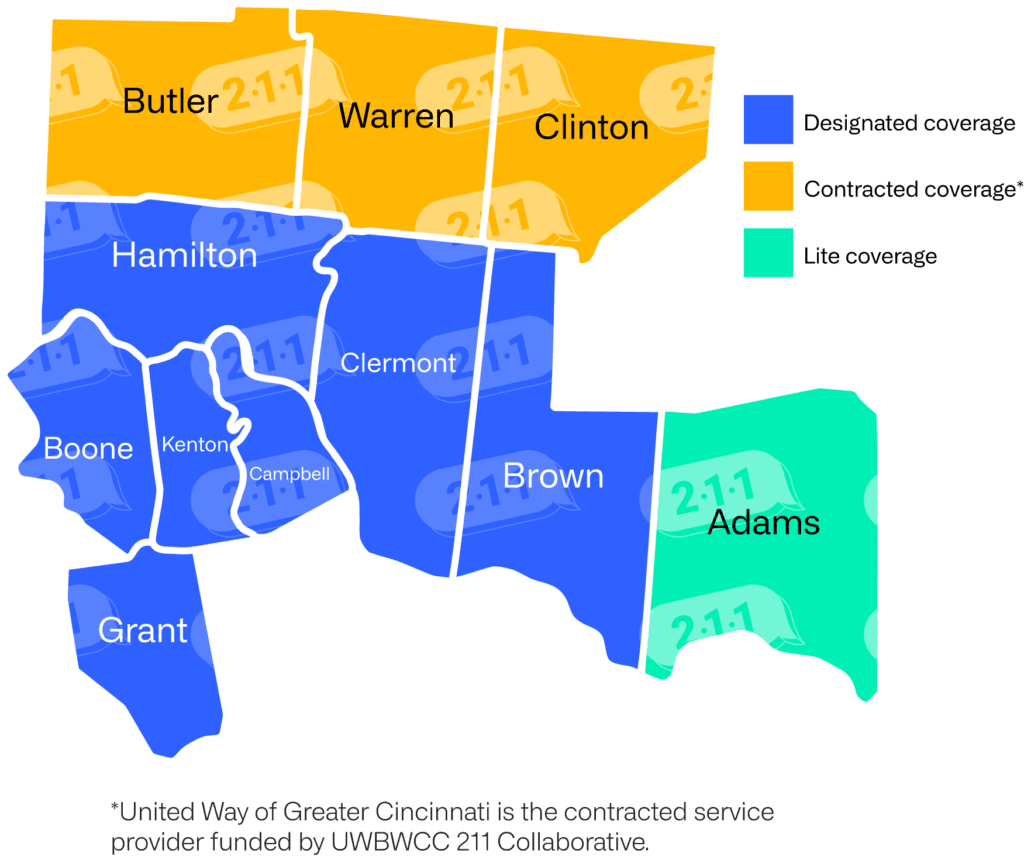 United way of greater Cincinnati 211 serves these areas